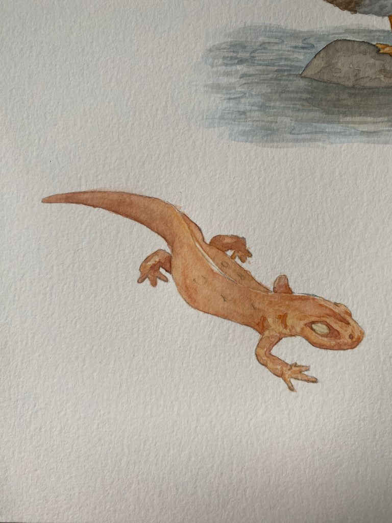 Week 2 brought some ups and downs, but I’m happy to say the Eastern Newt piece is officially finished! This little amphibian has been my focus for the first half of the marathon, and though it came with a few unexpected challenges (both on the page and off), I’m really proud of how it came together.