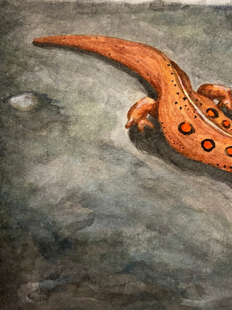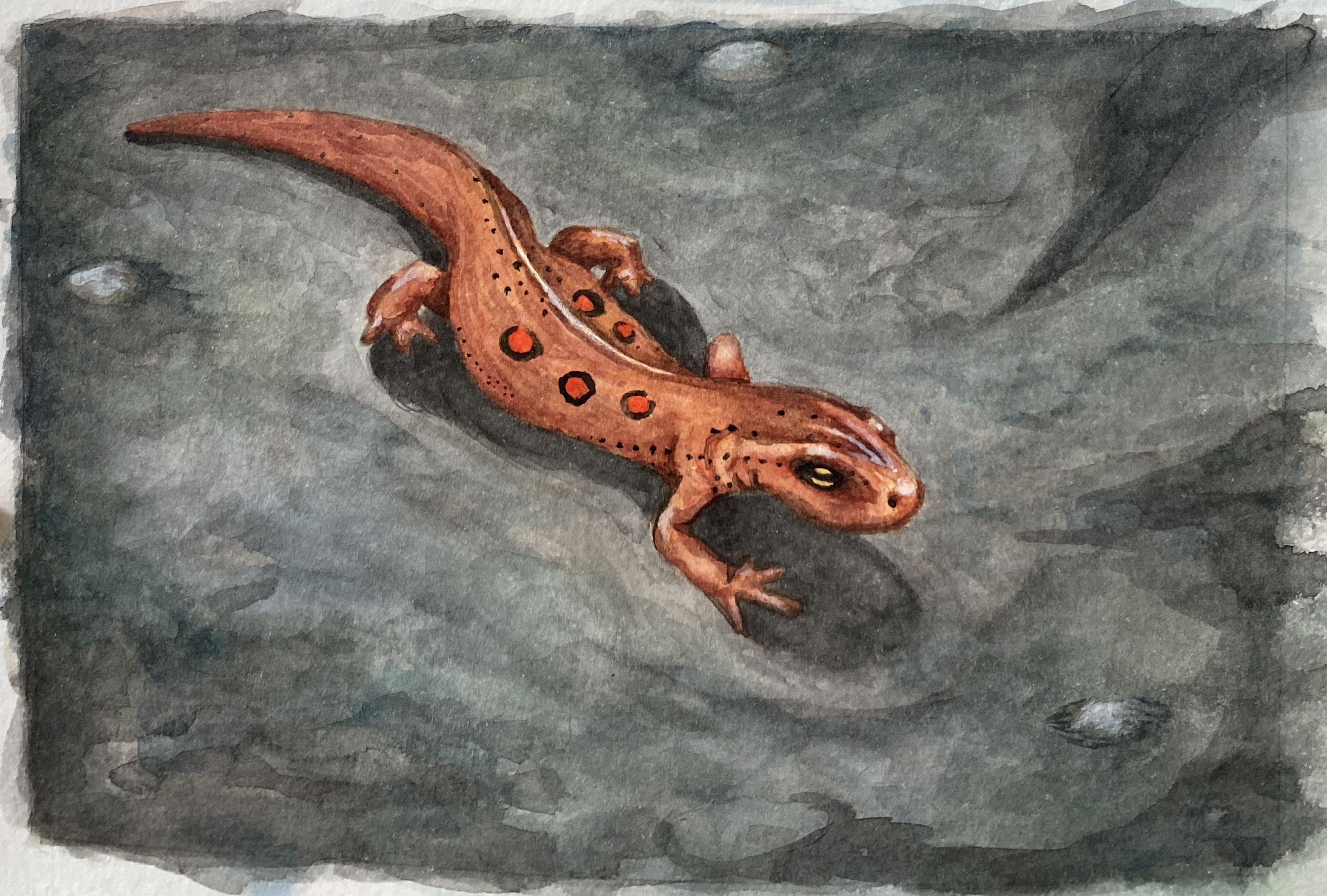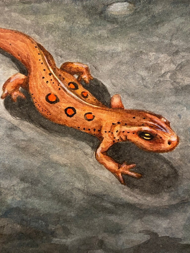 The first week of the May Arts Marathon is complete! I started with a watercolor portrait of the Eastern Newt, a bright little amphibian native to Vermont and most active during the spring and fall. It felt like the right place to begin—small, vibrant, and quietly resilient.