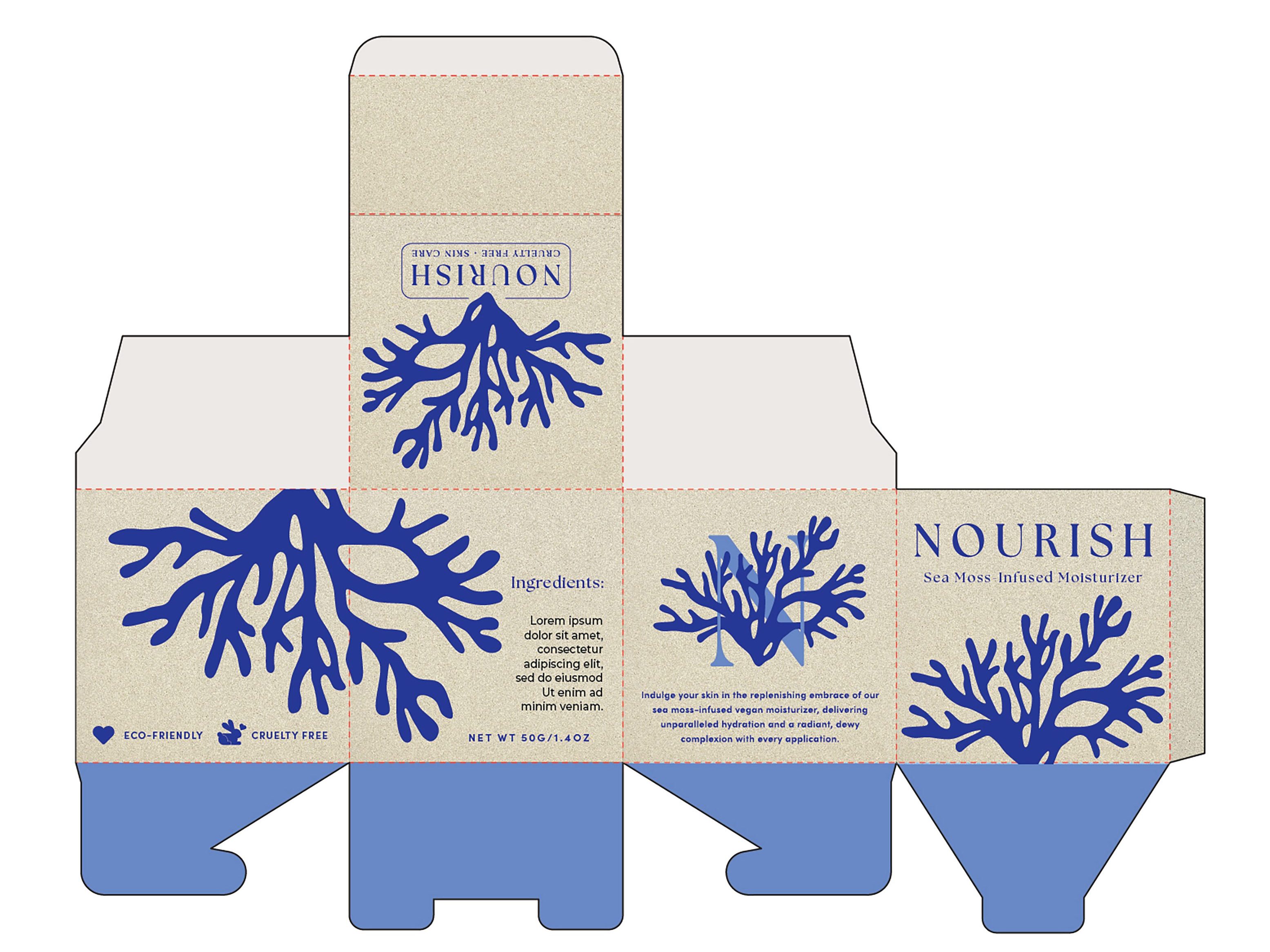 The logo embodies the purity and vitality of the ocean with its bold sea moss-inspired form. Clean, modern typography reinforces the promise of integrity and care, while the deep blue palette evokes calm, trust, and the restorative power of the sea. The design balances elegance with simplicity, making it as memorable on packaging as it is on digital platforms.